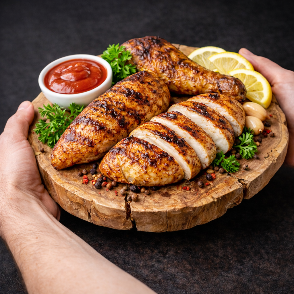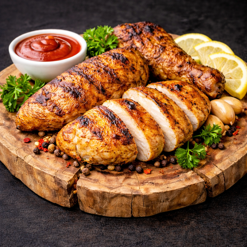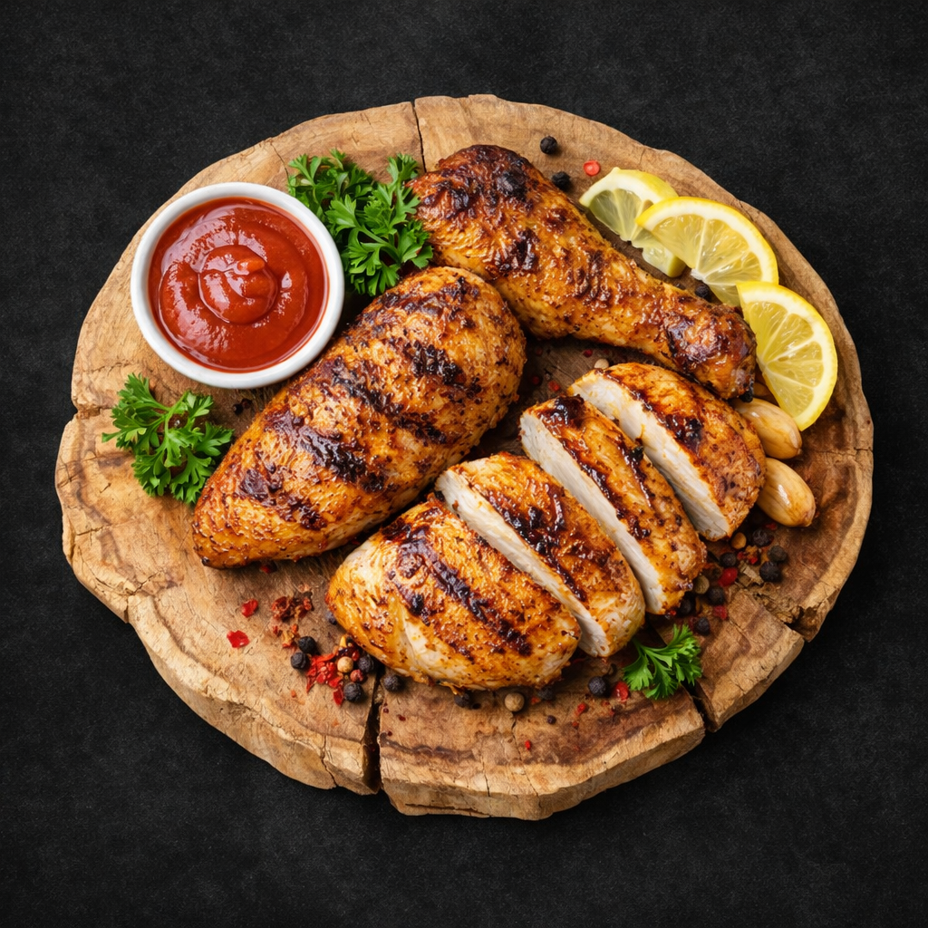 Our Grilled Chicken Platter is prepared fresh using tender chicken pieces marinated in a flavour-packed blend of spices, herbs, and seasoning. The chicken is then grilled on high heat to create a smoky char-grilled taste while keeping the inside juicy and soft. Every piece is cooked until perfectly golden with light grill marks, giving you the best balance of crisp outer texture and tender bite. Served hot with a delicious dip, lemon wedges, and fresh garnishing, this platter is a perfect choice for anyone who loves bold flavour, clean cooking, and satisfying portions.